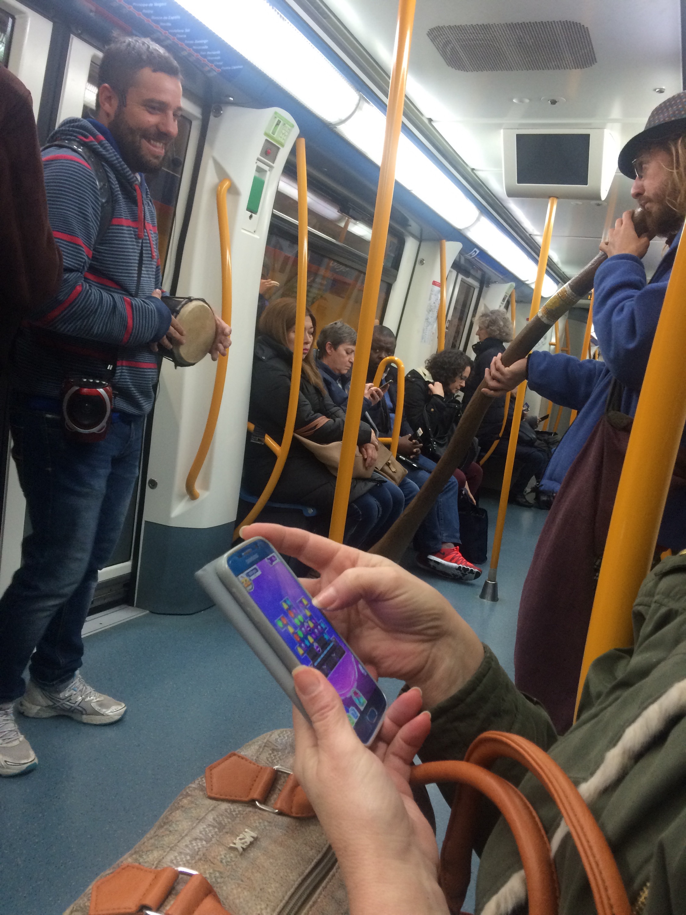Yes they play on the metro here in Spain for money, not only in NYC. This instrument was so interesting, I had to take shot!