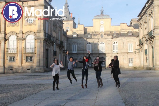 In La Granja, Segovia, with some random student, Ada, myself, Sophia and Sarah!